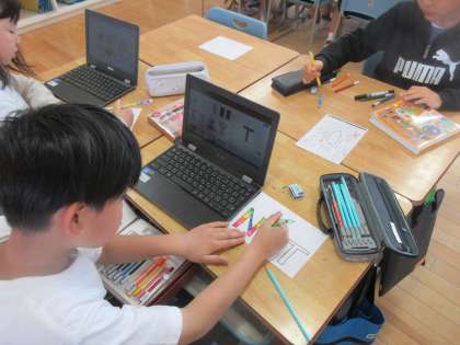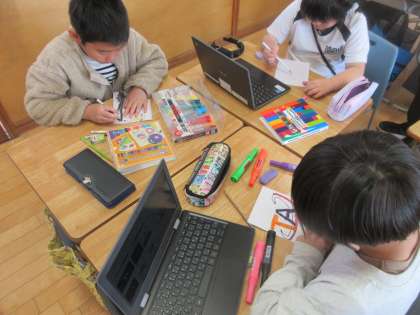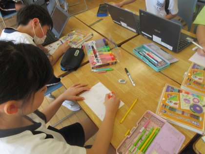 自分の好きな絵や模様を描いて、オリジナルのマークをつくっています。