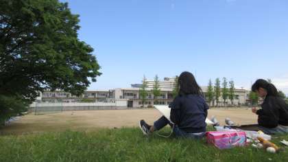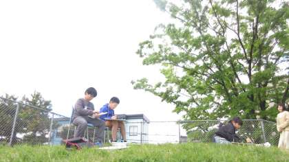 外は快晴。「わたしの大切な風景」というテーマで、思い思いの場所を選んで、マーメード紙に表しました。それぞれの思いを込めて、よく風景を観察して描いています。