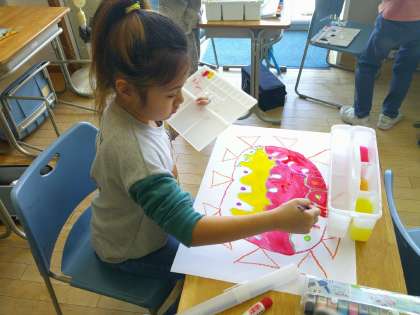 「〜したい!」「〜だったらいいなあ」と想像を膨らませて、集中して表現を楽しんでいました。割れた卵から、どんなものが、どんな世界が飛び出してくるのでしょうか。完成が楽しみです。