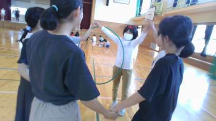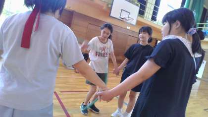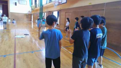 全校児童を赤白青黄に分けて、異学年交流を図れるようにします。