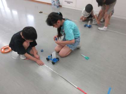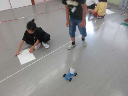 風の強さを変えると、車の動きはどのように変わるのかを調べました。