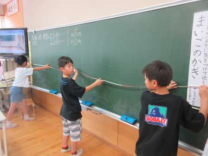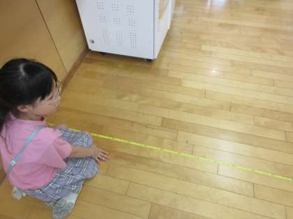 色々なものの長さを予想し、巻き尺を使って測りました。