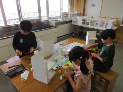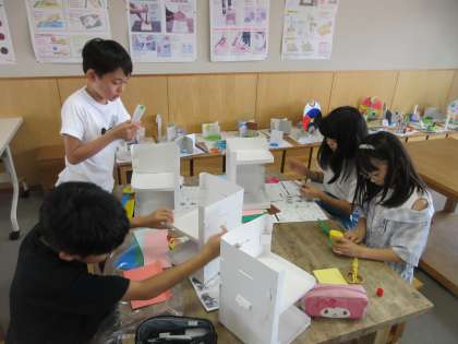 ビー玉の転がり方を考えながら、工夫して製作を進めています。