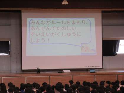 プールでの約束を確認して、安全に気を付けながら取り組めるようにしています。