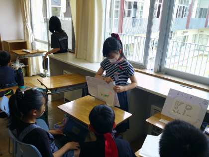 社会の調べ学習を発表しました。それぞれの班でまとめ方や発表方法を工夫していました。