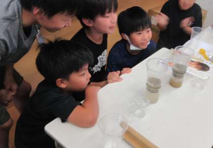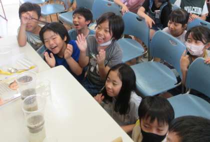 水のしみ込み方について、実験しました。自分の予想と合っているか、わくわくしながら結果を観察していました。