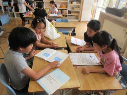 学級活動の時間には、夏休みに取り組んだ学習や作品、思い出等について友達と話したりゲームをしたりして楽しみました。