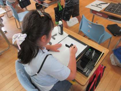 筆使いに気を付けて「たて画」を書く練習をしました。