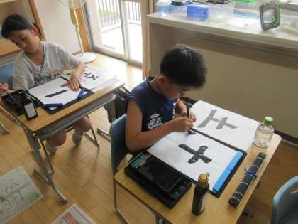 筆使いに気を付けて「たて画」を書く練習をしました。