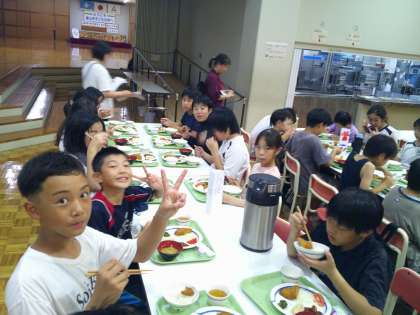 元気いっぱいに活動し、お腹がぺこぺこな子供たちは、夕食をとても楽しみにしていました。おいしくいただきました!