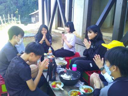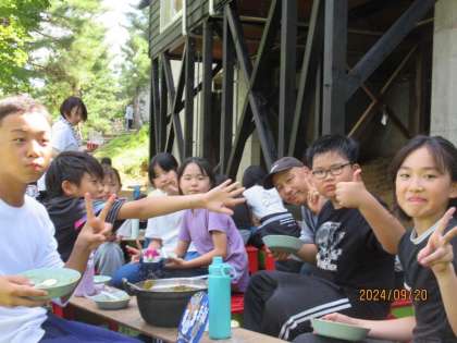 みんなで協力してつくったカレーはとてもおいしかったです。「初めて1から米をたいた、もちもちで最高!」「おいしすぎる!」と、みんなにこにこ笑顔で食べていました。