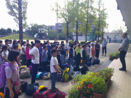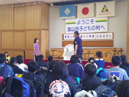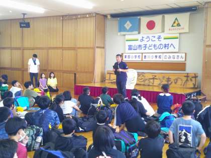 子どもの村での活動を終え、子供たちはお世話になった職員の方々に感謝の気持ちを伝えました。バスで学校に戻り、子供たちは代表児童の挨拶や校長先生のお話を聞く中で、宿泊学習での学びを今後の学校生活に生かしていこうとする気持ちを高めました。