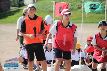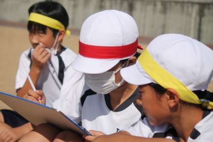 高学年の児童には、自分の競技の他にも運動会を運営する係の仕事があります。予行練習では、役割を確認しながら仕事に取り組む姿が見られました。