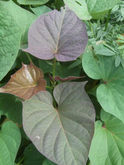 つぎの3まいのしゃしんの中で、「サツマイモ」のはっぱはどれでしょう?