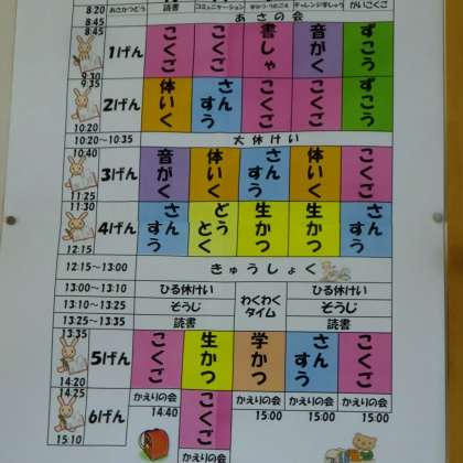 学校では、2年生のじかんわりがかんせいしましたよ。火曜日は、6げん目もありますね。学校でおべんきょうできる日をたのしみにしていてくださいね!