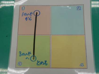 4がつにべんきょうした「4つのへや」のどこをとおるのかを、しっかりたしかめながら、かいていきましょう。