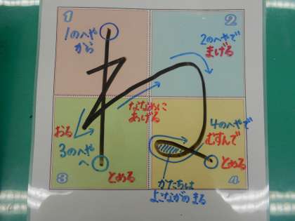 たしかめポイントは、2かくめの「ななめにあがるところ」と「4のへやでむすぶとことのかたち」です。