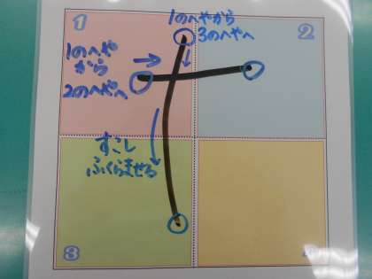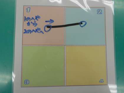 4がつにべんきょうした「4つのへや」のどこをとおるのかを、しっかりたしかめながら、かいていきましょう。