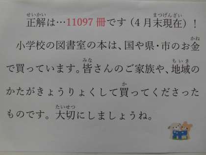 図書室の本の冊数の答えと問題です。図書室にある本で楽しく読書ができる日が待ち遠しいです。