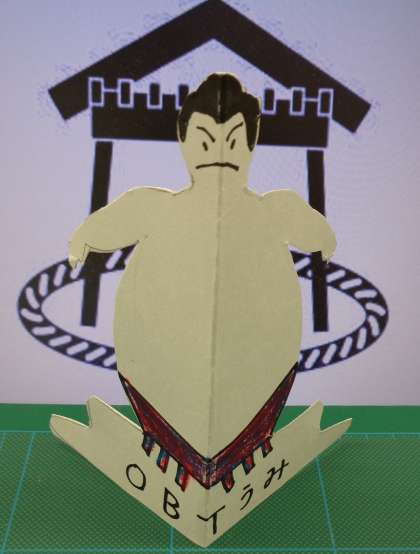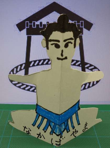 線対称を利用して、厚紙でお相撲さんを作りました。