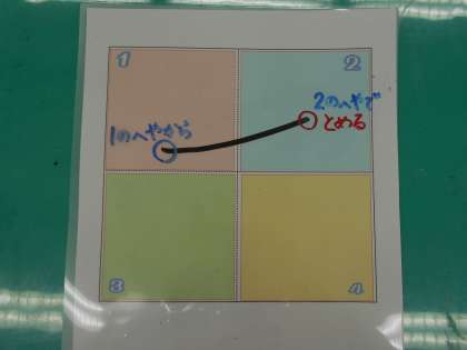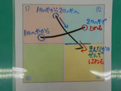 1ねんせいのみなさん、ひらがなおけいこは すすみましたか。ひらがな「さ」のかきかたを いっしょに たしかめましょう。たしかめポイントは、2かくめは まんなかのせんのところで はねることです。