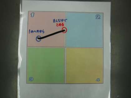 1ねんせいのみなさん、ひらがなおけいこは、すすんでいますか。ひらがなの「む」について、いっしょにたしかめていきましょう。「む」のたしかめポイントは、2かくめは 3のへやで さんかくになるように むすぶことです。