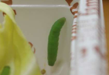 土日の間に、モンシロチョウのよう虫が5ひき、さなぎになりました。今日もさらに2ひきのよう虫がさなぎになるための場所をさがし、じゅんびを始めました。成虫になるのが待ち遠しいです。