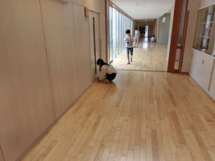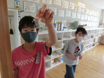 掃除場所のごみをセロハンテープでペタペタ取って、どんなところにどんなゴミがあるのかを調べました。