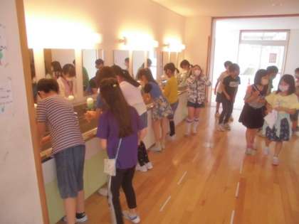 大休憩や昼休憩で遊んでいる子供たちは、遊び終えた後、必ず手洗いをしています。保健係が呼びかけのポスターを作り、手洗い場の前に貼るなど、衛生面に気を付けて日々を過ごしています。