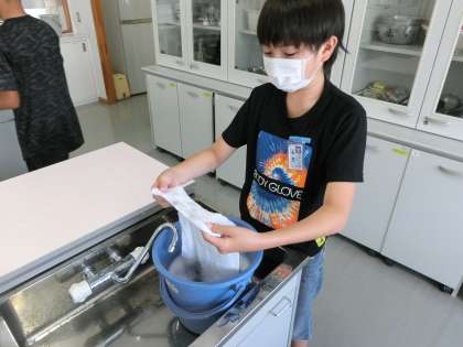 家庭科の学習で洗濯について学んでいます。