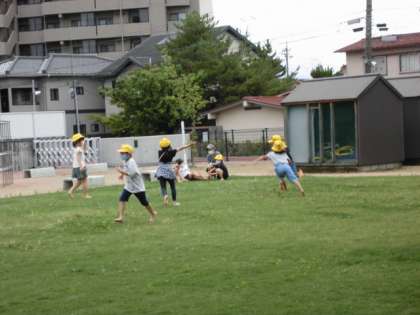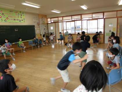 今日のわくわくタイムは、それぞれのクラスで楽しく過ごしました。芝生広場でおにごっこをしたり、教室でフルーツバスケットをしたりしました。