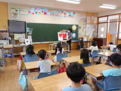 今日の朝活動の時間に、ボランティアの方による本の読み聞かせ会がありました。ボランティアの方が読んでくださるお話をとても真剣に聞いていました。指を使ったお話では、子供たちも一緒になって楽しみました。本の世界に引き込まれ、本がもっと大好きになりました。