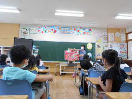 今日の朝活動の時間に、ボランティアの方による本の読み聞かせ会がありました。ボランティアの方が読んでくださるお話をとても真剣に聞いていました。指を使ったお話では、子供たちも一緒になって楽しみました。本の世界に引き込まれ、本がもっと大好きになりました。