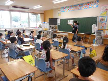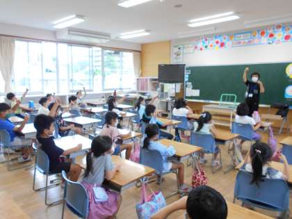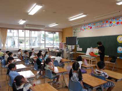 今日の朝活動は、読み聞かせ会でした。先週に引き続き今週も、子供達は動きや歌を交えたお話や、大型絵本等に夢中になっていました。