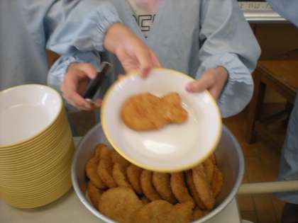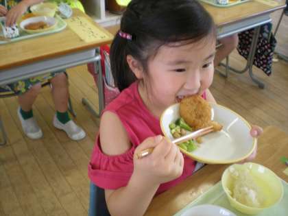 今日は、1学期の給食最終日でした。朝から子供たちは、教室に貼ってある献立表を覗き込んで、「楽しみにしていたお魚カツの日が、やっときた」「頭から食べようかな、しっぽから食べようかな」と、盛り上がっていました。給食の時間、お魚の形を眺めながら、思わず顔もほころびます。そして、ぺろりとおかずを平らげていました。