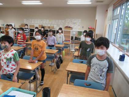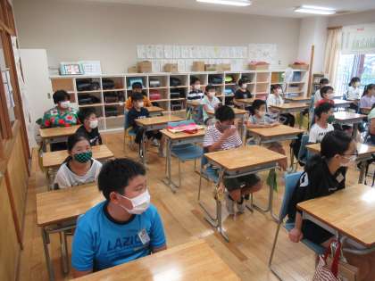 今日で1学期が終わり、各教室で放送による終業式が行われました。高学年としてのスタートとなったこの1学期の頑張りを、5年生の子供たちはそれぞれ振り返り、夏休みのめあてをたてていました。久しぶりに校歌も歌いました。例年より短い夏休みですが、充実した10日間を過ごしてほしいと思います。2学期の始業式で、子供たちの元気な顔を見るのを楽しみにしています。