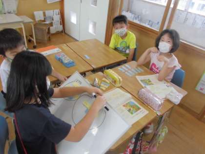 国語の学習で、山小屋で3日間過ごすとしたら何を持って行くかをグループで話し合いました。