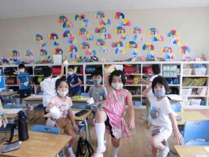 体育の学習等で、「チャレンジ キッズ わざ7」に取り組んでいます。走る、跳ぶ、投げる等のいろいろな技に挑戦します。今日は、投げる技の「紙鉄砲の音が鳴った」に取り組みました。回を重ねるごとに、パンと、いい音が響くように鳴ってきました。手を振る大きな動作を、ボールを投げる動作につなげてほしいと思います。みんな、がんばれ!