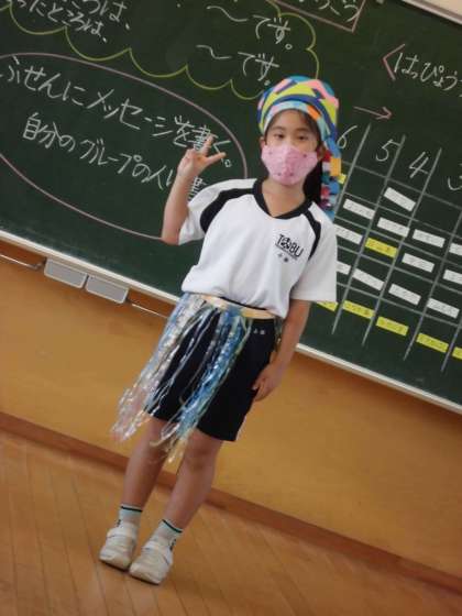 今日は、「わっかでへんしん」ファッションショーを開きました。自分の工夫したことを発表した後、ランウェイを歩きました。みんなで、拍手の中を歩き、ポーズもとって、とてもうれしそうな子供たちでした。