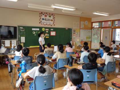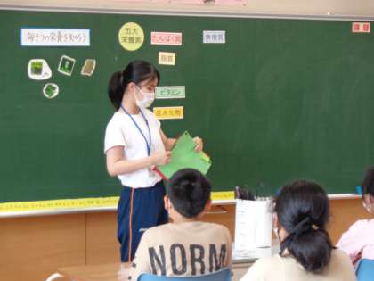 今日の給食にでていた「もずくチャプチェ」から、もずくなどの海藻類の話や食物繊維の話を聞きました。子供達は興味津々で話を聞き、給食後には「今日のもずくチャプチェ美味しかった!」と話していました。