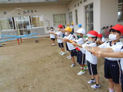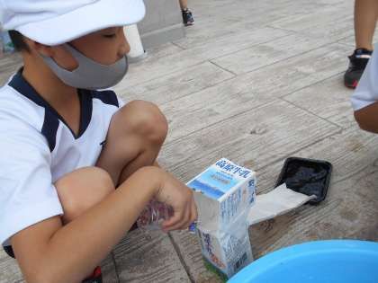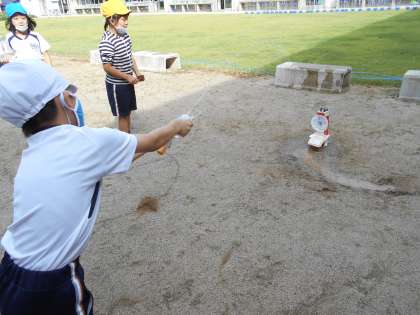 生活科で「水と遊ぼう」の学習をしています。活動や話合いで分かったことを生かして作ったおもちゃで、工夫して遊んでいます。始めの頃より、いろいろな遊びに挑戦する姿が見られるようになってきました。