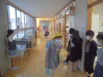 朝、登校時には、挨拶係が廊下であいさつ運動に取り組んでいます。「おはようございます」の挨拶が、3,4年生廊下に響いていました。挨拶係ではない子供たちも、参加している様子も見られました。