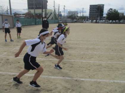 屋外で行う体育は久しぶりだったこともあり、どの子供も全力で駆け抜けました。