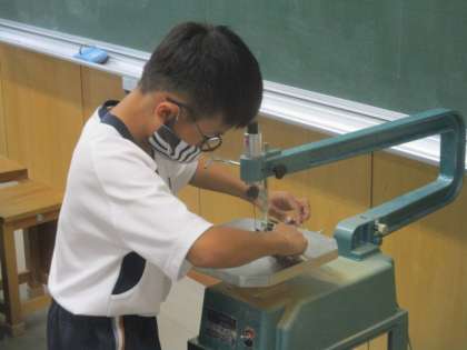 図工の時間に、電動糸のこぎりを使ってパズルやビー玉のプレイランドを作っている様子です。1組では、パズルが完成した子もいました。安全に気を付けて、丁寧に作業を進めていました。