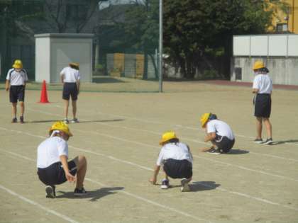 今週の金曜日に行われる運動会に向けて、5年生はグラウンドの石を拾ったり、運動会当日の役割や動きを確認したりしました。