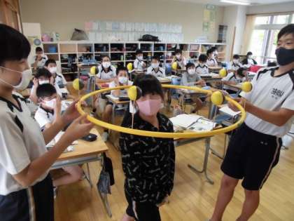 月の見え方が変わる理由について、模型を使いながら実験しました。