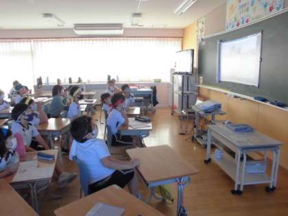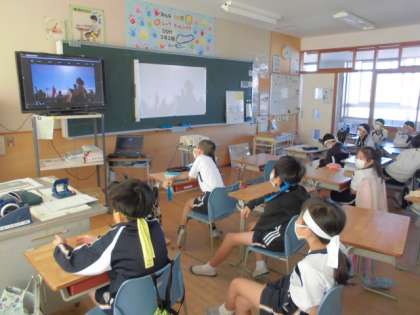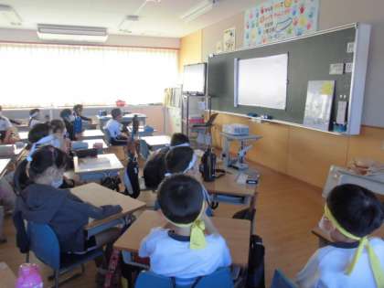 今日は気持ちのいい天気の中、運動会を行うことができました。子供たちはグラウンドで観戦する代わりに、中継を繋いで教室で観戦しました。