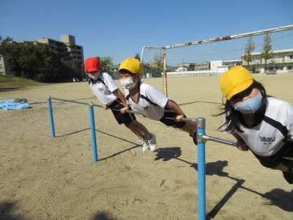 体育の学習で、鉄棒をしました。今回は「つばめ」と「ふとん干し」の技に挑戦しました。初めての技もあったようですが、1時間でどんどん上達しました。