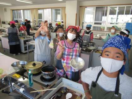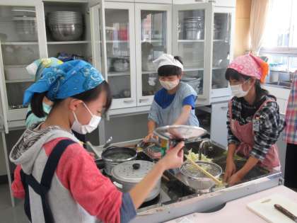 1組では、2回目の調理実習で、ゆで野菜サラダをつくりました。野菜をゆでる手順もスムーズになっていました。調理や片付けを協力、分担して行うことができました。