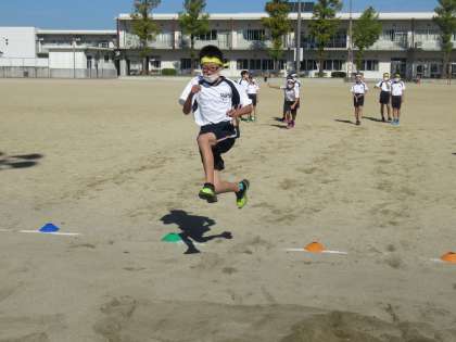 5年生 体育 走り幅跳び、鉄棒運動 2、3組